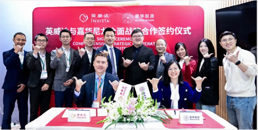 4月23日,英威達(中國)投資有限公司與浙江嘉華特種尼龍有限公司簽訂尼龍戰(zhàn)略合作協(xié)議,基于雙方的綜合性優(yōu)勢,尋求深化尼龍66服飾纖維領(lǐng)域的技術(shù)、研發(fā)與商業(yè)合作的機會,拓寬尼龍66服飾纖維應(yīng)用前景,以更高品質(zhì)的服裝原材料提升終端消費者體驗。以此,英威達也將繼續(xù)秉承承諾,攜手產(chǎn)業(yè)鏈合作伙伴共促尼龍66行業(yè)升級。
